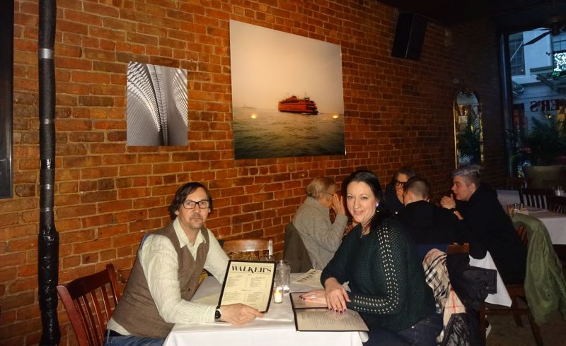 Every time we go to Walkers Tavern it’s extremely friendly. We had the same Argentinian waitress as last time and she loves to talk. We were purely coincidentally sat in almost the exact spot that my mum and my brother Martyn had sat in during the week of our wedding, in the second of the two exposed-brick elongated rooms that run behind the main bar room and parallel to it. The waitress also took us through a side door to an Italian restaurant next door, which she said is owned by the same couple (one Irish, one of Spanish descent) who own Walkers. They apparently also own the famous old ‘mom and pop’ bar The Ear Inn, in Soho, and which we haven’t been to yet. She mentioned how lovely the owners are, and that the staff can drink whenever they want and eat the best steak.