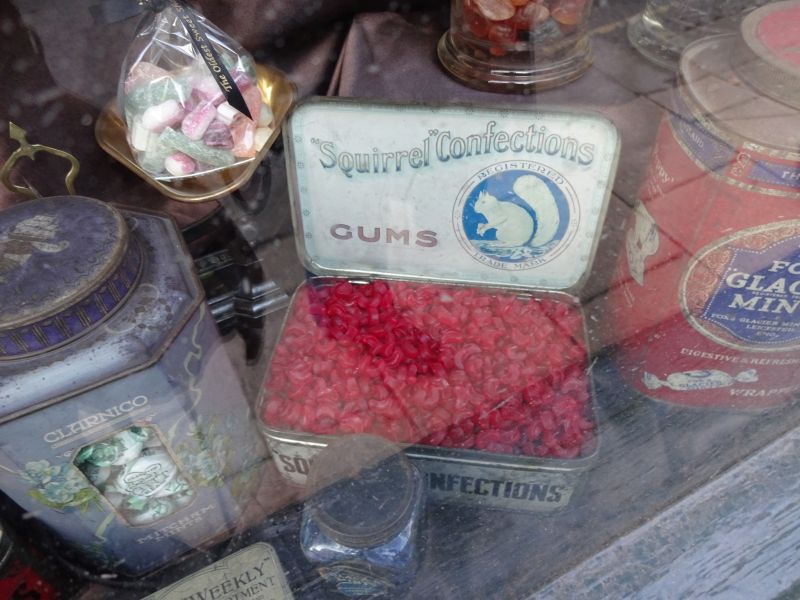 We bought a lot of quarter pounds of all kinds at the sweet shop next: pontefract cakes, coconut mushrooms, licorice confits etc. What a wondrous shop and probably the best vintage sweet shop we’ve been to!