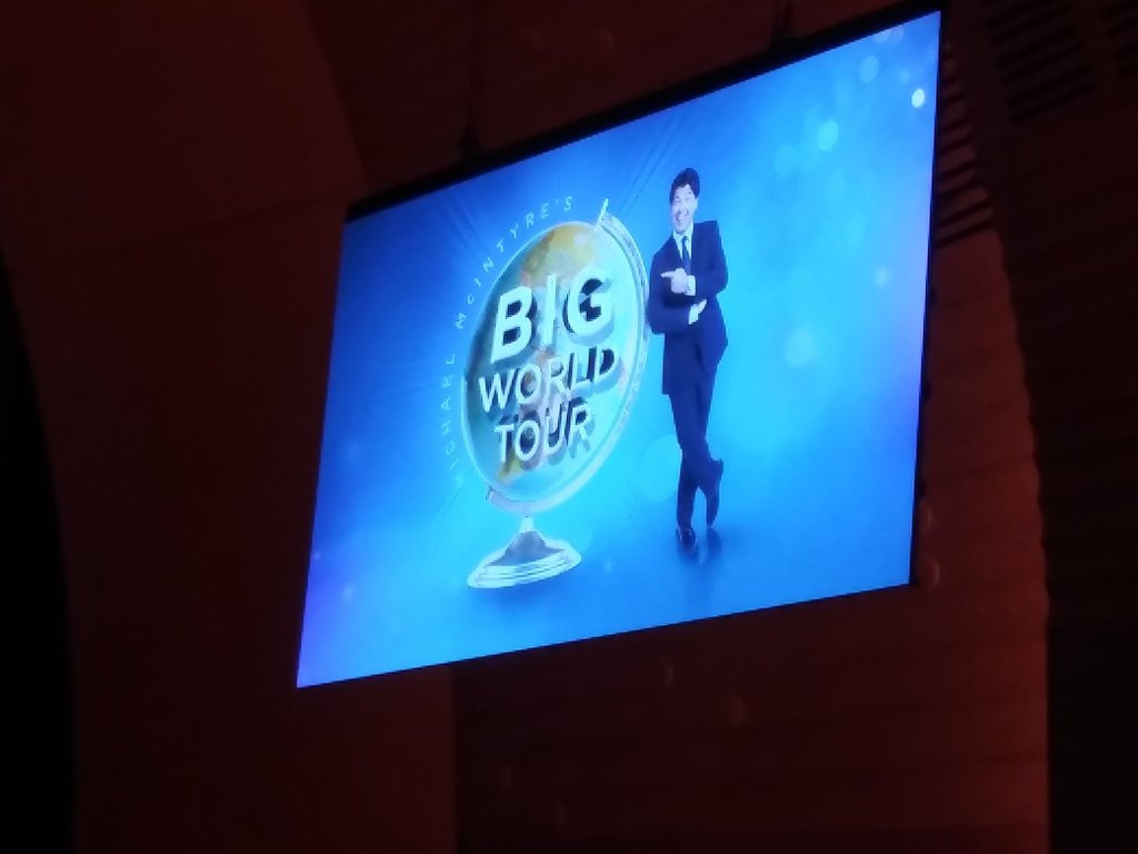 On Saturday evening, we ate dinner and drank at Cock and Bull (British themed) pub-restaurant not far from Times Square. We’d only been there once, about 7 or 8 years ago, and the food was purty good then though we remembered it best for an $11 British pint which seemed steep. Last night the food was beyond excellent: to start, a rich and sliced delicious British-style sausage roll (with stilton) and the main dish of cod and chips was tremendous! Something they’re noted for. Marie had two cocktails and I a whitbier. We chose it partly as it’s near Radio City, and we were seeing the London comedian, Michael McIntyre afterwards. McIntyre’s cheeky-chirpy-chappy show was hilarious and we had an amazing time. You wonder before a stand-up show where a comedian will get his or her ideas. With MM he doesn’t rely on politics or worldly satire, or smut, but has everyone in hysterics on topics like mobile phones, peeing, falling asleep at home post-40 etc. He’s so physically animated too. It was only his second show in America ever and was sold-out (he mentioned that his last and only other U.S gig was at Beacon Theatre, NYC, two years ago), and the culmination of his World Tour. Other comedians we’d love to see at some point, though many of the Brits don’t play here: Greg Davies, Roisin Conaty, Ricky Gervais, Frank Skinner and Noel Fielding.