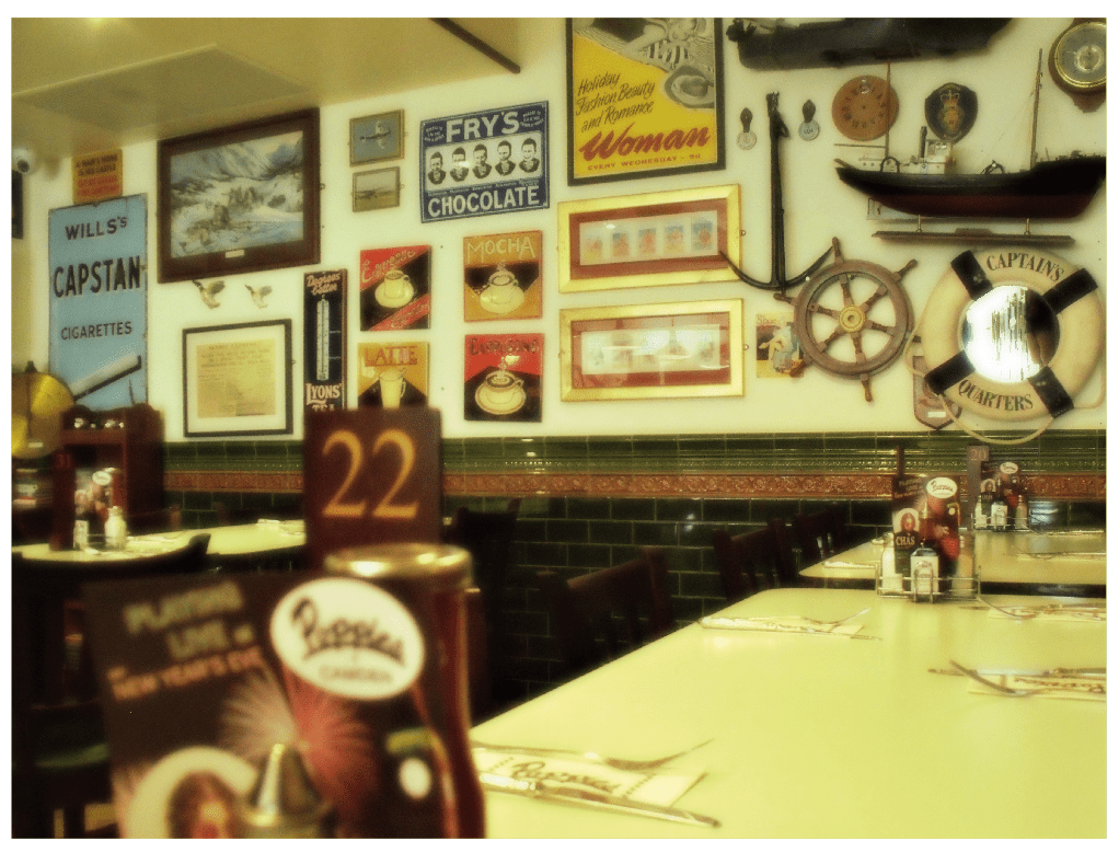 We woke in beautiful Hampstead then, and made the walk of about 30 feet to one of our breakfast options, the Coffee Cup café. Reading about it online beforehand, apparently many famous people have ended up eating here at some point, including Paul McCartney. It’s basically a very nice, wood panelled, 1950s greasy spoon owned by Italians (we think). Well it’s more than a greasy spoon, as it’s a restaurant too later in the day.