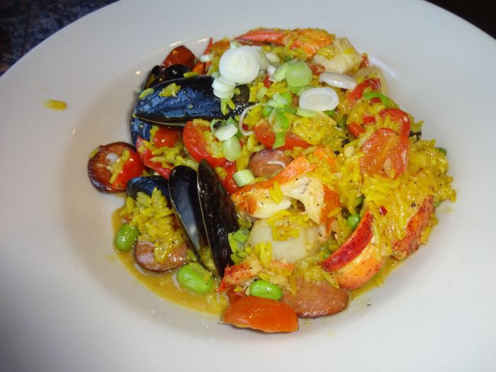 We had an early dinner, one of our favourites of the whole trip. At Walter’s Basin we had an ideal window seat with a view over Little Squam. We chose bourbon-glazed brussel sprouts to start, and shared a champion paella for mains. The lobster in the paella was fractionally overcooked – not much – but the dish was richly flavourful, bright and one of the best (maybe the best) restaurant paella we’ve had in the U.S. Although many Spaniards in Spain don’t like chorizo in paella, you couldn’t argue against it in this one.