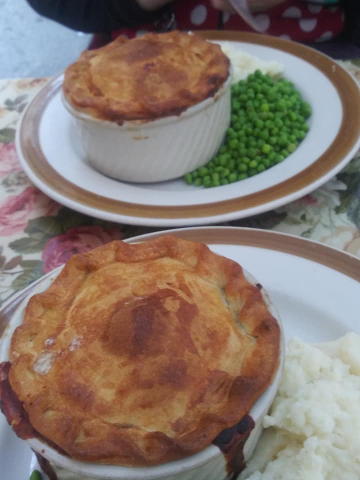 You can order from its T & S menu or from A Salt and Battery, but we wanted the meat pies today. By the way, Tea and Sympathy has been popular among lots of ex Pats and celebrities (ex Pat or not!). The first time we ever went, in about 2008, Mike Myers was at the table next to us. Considering that the indoor seating is so tiny you could easily get your elbow in someone else’s mashed potato it makes it even more interesting if someone famous is next to you. Anyway, back to today! You have a lot more space at the outdoor tables, and of course it’s essential to have that space right now.