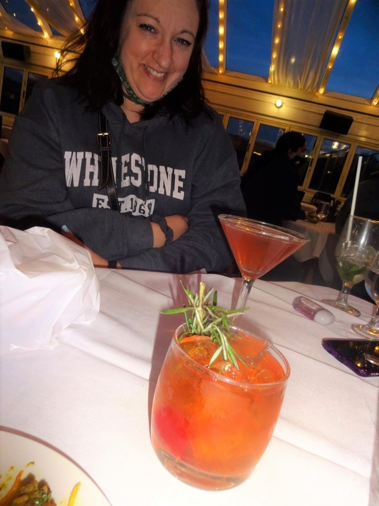 Now, we have to say that Mediterranean food is not the high quality it is in Queens. But then there is less of a NY-Italian, NY-Greek population out here so it’s understandable. We enjoyed pizza in a casual setting on our one visit to Colosseo Pizza in Port Jeff (a little out of town). In fact, they only do pizza there. And, as mentioned in my last article we absolutely love The Pie restaurant in Downport PJ. We tried Pasta Pasta – also Downport on quaint and charming East Main Street – recently. It was for Marie’s birthday, and was suitably romantic and with delicious fare. We shared a burrata salad to kick off, then for Marie pappardelle bolognese for entree, for myself blackened Cajun style chicken with bowties and cream sauce and we also shared an inspired dessert called a “chocolate bag”! A crisp, thick chocolate bag shape, filled with white chocolate mousse and fresh fruit. As Del Boy from ‘Only Fools and Horses’ would say, it was the crème de la menthe!