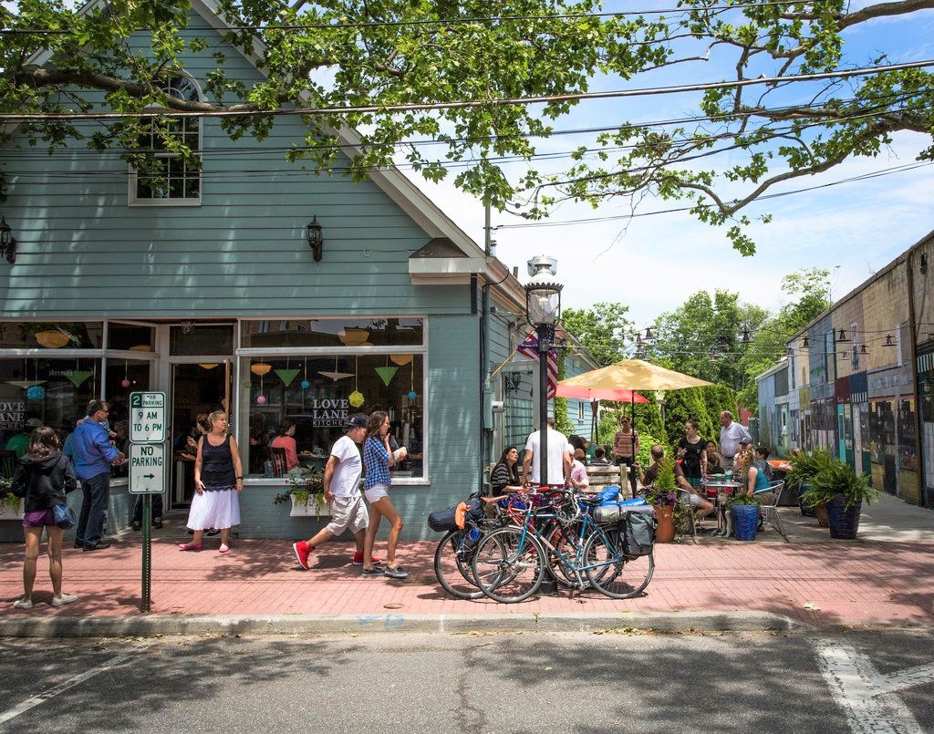 There is the main road through each of these towns, but chilled, leafy spots as well. We go often to the pretty and quite casual Turkish restaurant Mavi, which sits in a picturesque setting near a rustic gift shop opposite and also the fire station in Mount Sinai. The food is always great (try the Turkish cigars, sigara borek, starter), and it’s BYOB. We love the fireplace.