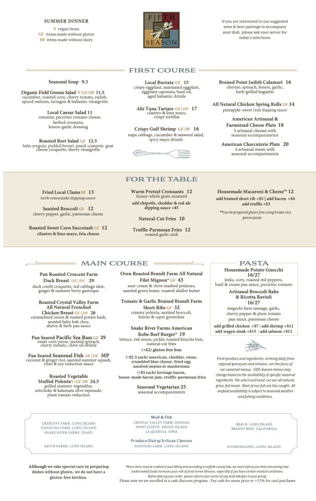 For fine dining, Fifth Season is wonderful and they support local farms. A sample of their menu below and some photos…