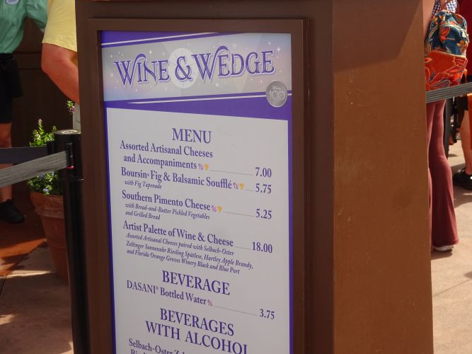 Then to ‘France’, where we had a reservation at the restaurant in a little while for the evening. Still sunny but it would be dark soon. Oh, I forgot to mention that we used our photo-pass too sometimes: the Disney professional photographers will take various photos of you that they send to your phone, with a ‘water mark’ over each one. If you like them you have the option of paying for any to be sent to you with the Disney water mark removed. We did that on several occasions, and there are some great ones of us. We had many taken on one day, and it’s $70 for all the days professional pictures so we might do that [a few days after getting back home, in the end we got such a lot of great snaps ourselves that we didn’t feel the need to buy the professional ones].