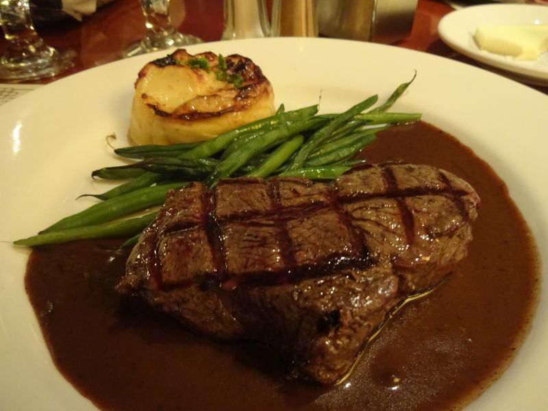 At the restaurant all the staff are genuinely French – speaking French among themselves. Our waiter was a real character. Food was excellent. Marie had the charcuterie meat and cheese platter, and I a steak au poivre.
