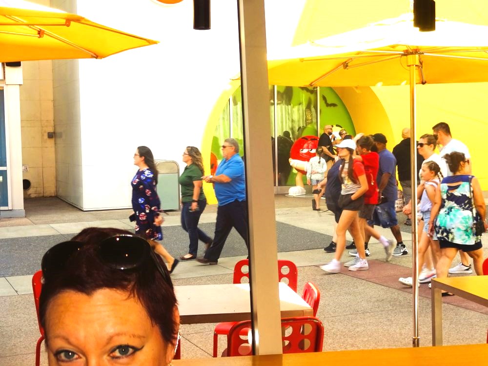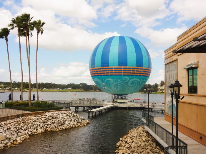 We had been to Disney Springs for a while in 2019. Marie drove us there, and we found it to be a really beautiful complex with loads to do. Skip forward to now, and as we’re walking in from the boat drop-off it was teeming with visitors right away. Well, it is Friday night after all. DS is full of everything, Disney shopping or just great shops (high end or more down-to-earth), loads of dining and light bite options and some quirky things too. We’d noticed the anchored hot air balloon in 2019, and we would have paid the $25 each for the experience but we’ve yet to be there when it goes (partially) up!