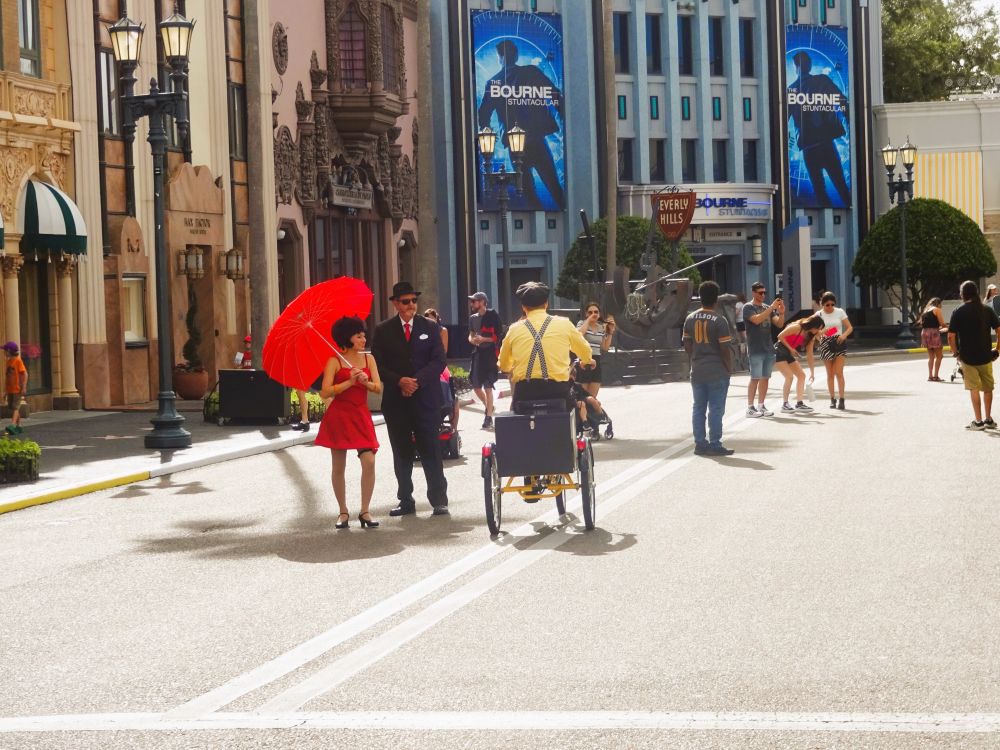 We had been before to Universal, and we enjoyed the laidbackness as soon as we entered. One other thing you feel as you go through your Universal day is that it’s more, for want of a better word, “macho”. More male and more adult, with chunkier, no-nonsense rides. Based on this day’s visit, there’s not as many young kids compared to other theme parks. The streets are done out like film sets, which is wonderful, and they have characters as you go along. Marilyn Monroe sat in the back seat of a passing convertible, Beetlejuice will be greeting and meeting at the side of the road etc etc.