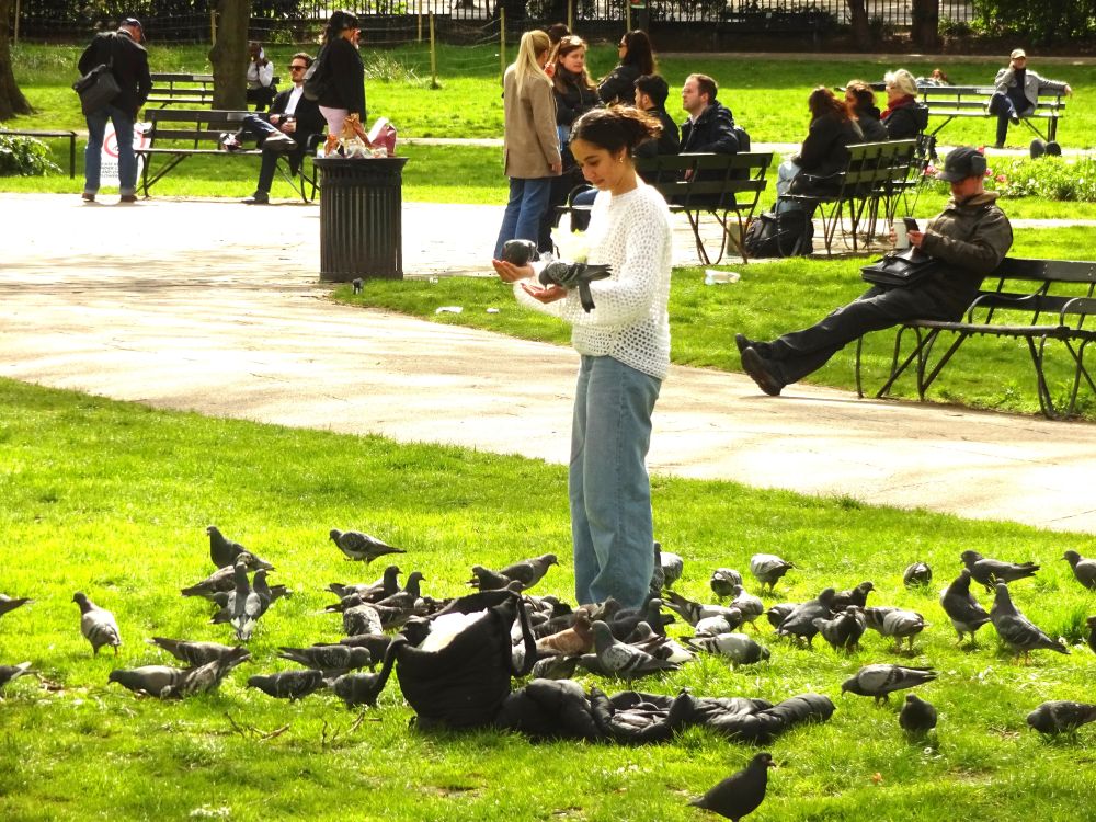 We were a little early to check in, so we of course strolled over to Russell Square which is one of our favourite places in the world. With the Italian cafe, Tropea, on the corner and one of the most idyllic green spaces in London. A young woman was like the pigeon whisperer.