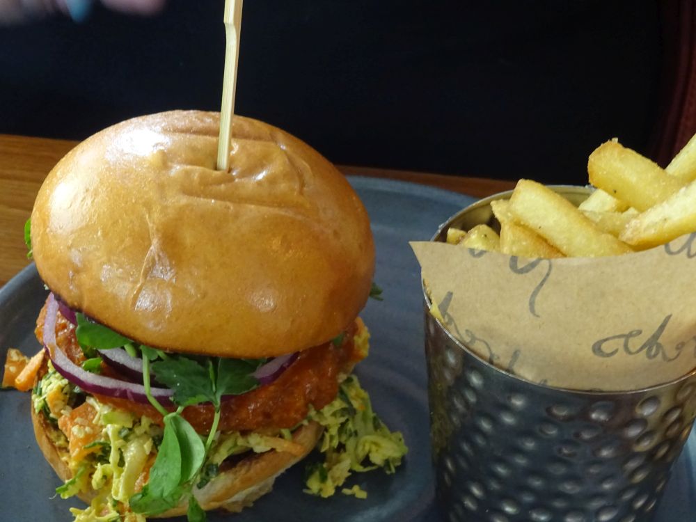 After that we started our planned, slow walk gradually through Kings Cross, stopping for a great vegan/vegetarian lunch at Mildred’s – really good hot mango glazed veggie chick+n burger.