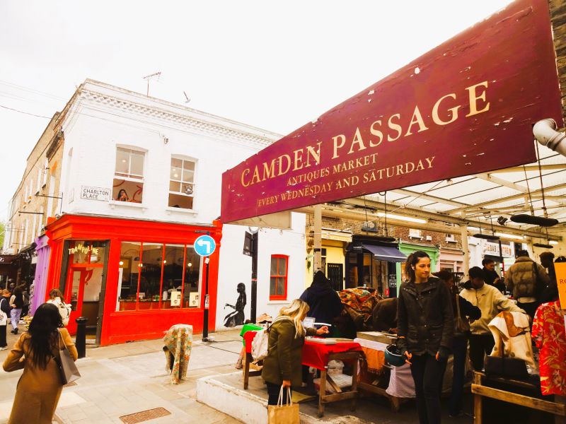 Then onwards and literally upwards for a bit to Islington. Initially, a workaday High Street which then became more interesting and more attractive as the walk went on. The neighbourhoods are leafy, well-to-do and beautiful. Back on the high street one of us needed a lavvy so we plumped for any decent pub. The Hope & Anchor wasn’t at all bad, and it turns out it was a great venue for alternative music in the 80s. We checked Marie’s pedometer. We’d done 19,000 steps so far today, but we’d do some more. Our friend Chris had recommended the Island Queen pub. It was well worth walking some extra steps through graceful back streets to get to it and it was a great, leafy neighbourhood place. We squeezed in to a corner table. In-between we went to two bakeries for cakes include the famous Ottolenghi.