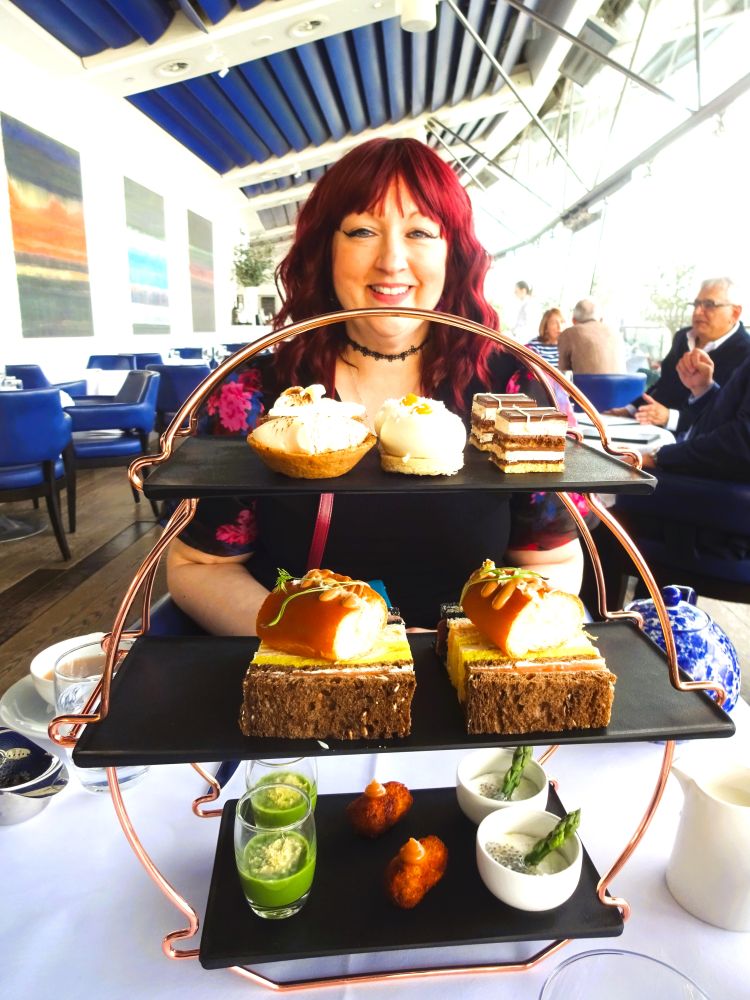 Then a bus to Southwark (American readers, it’s pronounced ‘Suthuk’). We had a 3pm reservation for afternoon tea at the Oxo Tower, at the side of the Thames in the wind and light rain. We’d read reviews and watched this exuberant, American woman review it on her youtube channel and it seems to be a fairly under-the-radar classic for afternoon tea. It was amazing, not just for the cakes and scones but for the savoury food, for the service (the waitress even insisted on folding my napkin and putting it on my lap) and for the panoramic views. It’s owned by Harvey Nichols, but prices aren’t at all bad at 40 GBP per person and you can dwell for the full two hours. We’ve had around seven afternoon teas in London over the years, each one at a different place. This is the new number one, with the Wolseley at number 2. From what we can tell, the fanciest places that charge double or more aren’t anything like as good.
