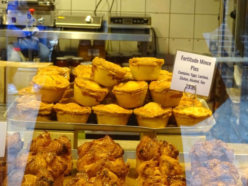 Like a couple of years ago, when we were in the UK in November, I would again be trying a different individual mince pie each day! I love them. There is a popular bakery called Fortitude close by, well known for their deeper than deep mince pie so we picked one up plus another light looking plain pastry – both for later tonight. I shall probably add a post on this blog later in the year, by the way, with a more in-depth review of mince pies.