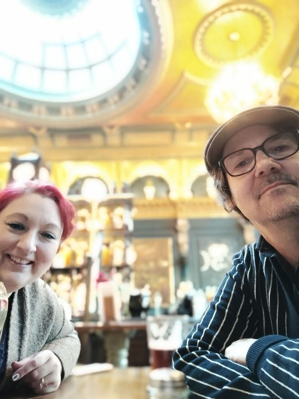 And drinks at the Victoria pub close by, which was very quiet. It has a lot of spooky, and comical touches like the toilet signs and the strangely adorned ceiling above us.
