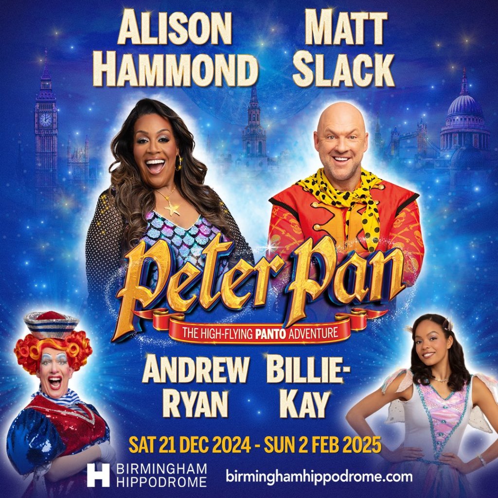 Back in town we shopped at Boots and Tesco Express, and back to the hotel. Then, off to a pantomime, Peter Pan! I wasn’t sure personally if I’d be cringing or if I’d enjoy it. Marie absolutely loved the whole vibrant, silly, happy two hour show and I must say I very much enjoyed it too! We took our very good seats at the Hippodrome, second tier but central and a perfect view. Stars included Matt Slack – who we didn’t previously know but a comedy panto specialist – and Alison Hammond who we definitely DO know from, among other things, the Great British Bake Off and Late Night Lycett. She’s a born and bred Brummie and Marie loves her.